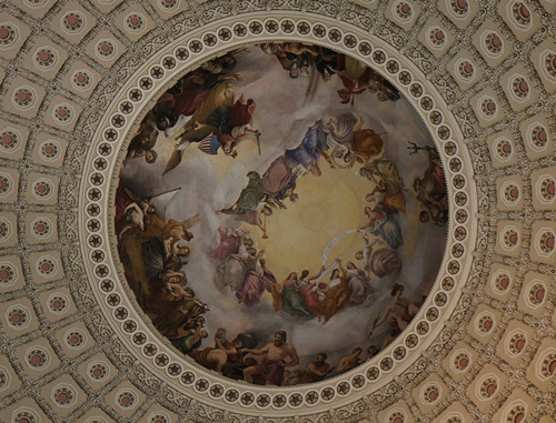 说起对华盛顿的印象,往往留在许多人脑海里的,是那座造型精美、秀丽挺拔的白色圆顶型建筑物---美国国会大厦。 美国国会大厦是世界上最广为人知的民主政府象征。远远望去,国会大厦外部的穹顶之上屹立着自由女神雕像。圆形大厅是国会大厦的主体结构. 圆形大厅内部高达180英尺,四周的墙壁上雕刻着美国的著名历史画面,所刻画的历史情节栩栩如生。圆形大厅天棚上的图案是意大利美国画家康斯坦丁诺.布鲁米绘制的《华盛顿升天图》,画面在白色背景的映衬下色彩丰富艳丽。自1800年起,国会大厦一直是美国国会所在地。1850年至20世纪80年代,国会大厦经历了一系列的扩建和变迁之后,国会的实用性得到了多方改进。国会在此议政立法;总统在此宣誓就职;总统的《国情咨文》也从这里广播天下。