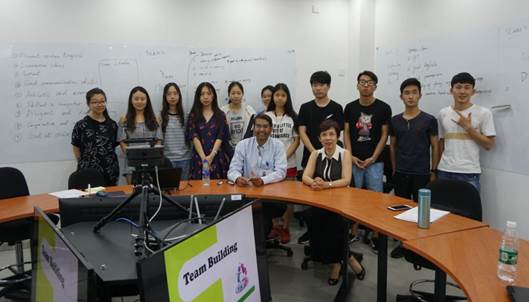 在科技迅速发展、全球气象日新月异的今天,大数据,云计算、人工智能等关键领域的发展将成为开启一场生活、工作与思维的大变革的关键推动力。创新即是驱动关键领域发展的源动力,此次关于“创新与领导力”的讨论恰如其时,我校国际商务系在教学工作上敏锐地把握了时代大潮,并不断积极与国际先进水平接轨,在已有的ODI项目成果基础上进一步深化,将国外不同的教育模式和先进的思想引入到我院的教学中,使得同学们有机会不出国门即可开拓国际化视野、接触国际前沿的专业知识。Ragu教授非常珍视此次来法大授课的机会,特别拿出黄进校长签发的暑期课程证书与在场师生合影留念。