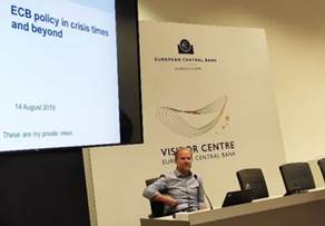 此外,刚从北京大学访学归来的Philipp Boeing博士介绍了中、德两国技术创新与经济增长关联绩效方面的对比结果,为大家提供了大量基于庞大微观数据分析获得的观测结果,与项目组成员们共同探讨了中国的创新和内生增长前景。就职于欧洲中央银行(ECB)的经济学家Florian Heider教授以经济危机时期及之后的欧洲央行政策为题,介绍了金融体系和欧洲央行货币政策的制定与调整机制,从欧元区的视角阐释了欧债危机的原因、影响及未来形势。