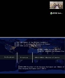 本课程旨在为学生提供一个全面的欧盟研究,介绍从1951年欧洲煤钢共同体的创建到2016年英国脱欧的整个欧盟发展的历史。该课程以历史的视角,按照时间顺序,突出讲授欧洲建设和一体化历史上的关键时刻。同时,该课程还采取了全球化史观,注重欧盟的经济及其与世界经济发展的关系,给同学们带来深入思考的空间。Laetitia Langlois副教授上课形式丰富多样,一方面通过讲授对欧盟发展有重要影响的人物的某些政策和演讲内容,提升学生的阅读文献能力,并通过提问和解疑,提高同学们的独立思考能力和自我表达水平;另一方面老师还能够结合时事,充分利用线上授课的特点和优势,利用视频材料为同学们展现了最为生动的欧盟形象;同时,还通过同学们的口头报告等形式,考察理论与实践结合能力,巩固所学内容。
