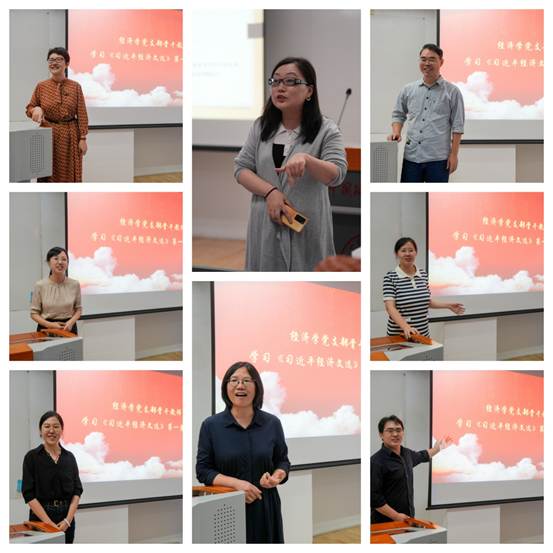 联学培训结束后,包括经济学党支部在内的党员教师们分两轮举行了专题讨论。首先是参加现场集中学习的具有高级专业技术职务的教授与副教授们,在学习结束后即纷纷发表了学习感想,表示要对《习近平经济文选》第一卷原版书籍进一步详细深入的自学。