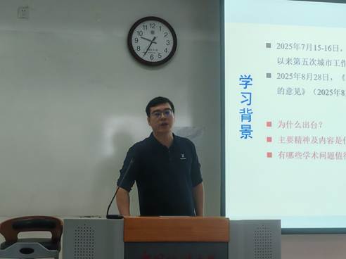 张弛老师介绍,“中央精神跟进学”主题系列活动是经济学党支部作为全国党建工作样板支部和全国高校“双带头人”教师党支部书记“强国行”专项行动团队相关工作的重要组成部分,旨在及时跟进学习党中央会议精神和习近平总书记重要讲话精神,推动中央精神内化于心、外化于行。张弛老师还指出,城市是现代化建设的重要载体、人民幸福生活的重要空间,推动城市高质量发展是推进中国式现代化的必然要求。