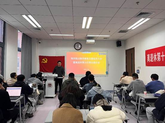 会议第二阶段,22级学硕党支部与离退休第18党支部开展支部共建活动。两名老党员同志依次讲话,给新入党的同学给予勉励。
