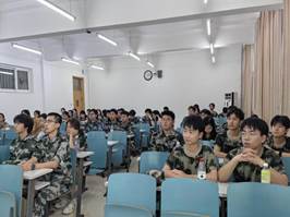 生逢盛世,新青年当肩挑重责,心怀梦想,不畏艰难,勇攀高峰。今年上半年,闵露妍成为了一名中共预备党员,也在2023级本科生军训过程中承担了训练任务,与师弟师妹们有了深入的接触,更通过这次学习会,将自己在入党和入伍道路上的心路历程毫无保留地分享给23级的入党积极分子们。在学习会的最后,她以《士兵突击》中的一句话勉励同学们在校园中坚定理想信念,不负青春韶华:“前边的路还很长,他们不再浪费力气去砍掉那些没完没了的树藤荆棘,而是从那些根本无路的地方硬挣出一条道路”。