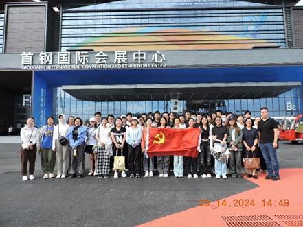 资本金融系和经济学党支部联合组织师生前往首钢园参观中国国际贸易服务交易会展览。资本金融系主任程碧波副教授、资本金融系李泳教授、经济学党支部书记兼经济系副主任黄立君副教授、支部党员李伯尧副教授以及孙玉哲老师,带领金融工程与经济学专业学生,重点参观了服贸会工银瑞信展区。本次活动为学生们提供了一个深入了解养老金融及金融科技等前沿领域的机会,同时推动了学院与业界的进一步合作交流。