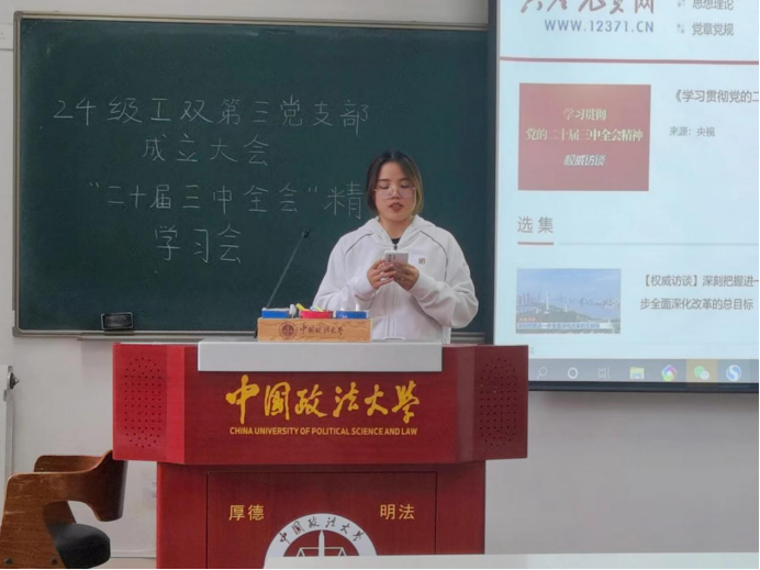 本次活动分为两部分:第一部分是2024级工双第三党支部成立大会,第二部分是开展理论学习。