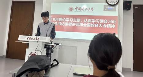 本次理论学习的主题为“领会习近平总书记重要讲话和全国教育大会精神”,主讲人为2024级博士生胡凯旋同志。胡凯旋同志为大家梳理了全国教育大会的主要内容。习近平总书记全面总结了新时代教育事业取得的历史性成就、发生的格局性变化,系统部署了全面推进教育强国建设的战略任务和重大举措,为建设教育强国指明了前进方向、提供了根本遵循。