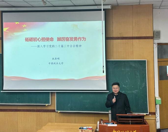 马克思主义学院祝奉明副教授主讲,第一党支部书记王晓曦主持,第三党支部书记张力元出席,三个党支部的党员、积极分子均参会学习。