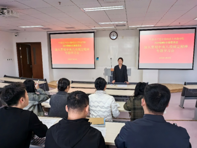 24级MBA党支部在综合楼0502教室召开专题学习会,组织全体党员进行集中理论学习,会议由党支部书记彭婉颖主持。