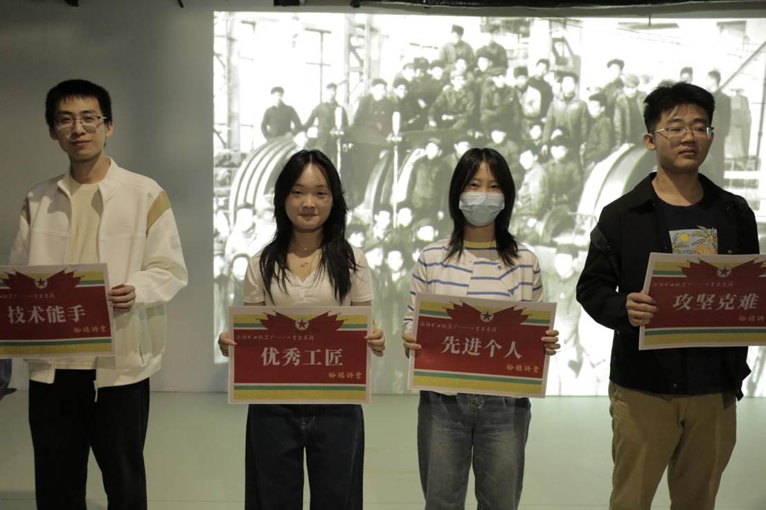 在沉浸场景《洛矿攻坚》里,同学们化身洛矿车间里的“先进职工”,切身体会2.5m卷扬机研发过程中的艰辛和技术难关被攻克后的喜悦,感受焦裕禄同志“睡三个月板凳”的全情投入和“不拘一格降人才”的科学求是精神。