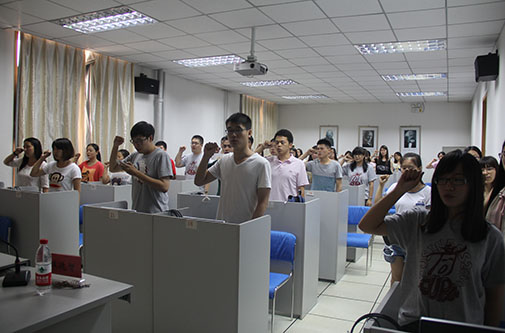 2014年6月23日,我院在格物楼116组织开展了“最后一次党课”活动。我院候廷智老师、何欣老师以及2010级辅导员郭虹莅临本次活动为我们毕业生党员进行了理想信念教育。