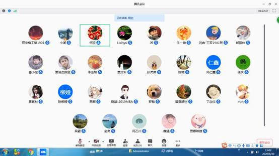 接下来,来自各个年级的抗疫志愿者代表进行发言。同学们分布在全国各地,更有在疫情期间处于疫情中心——湖北的同学。他们向与会人员介绍了自己在家乡作为志愿者进行服务的经历,讲述他们在社区、高铁站等地工作的内容、流程,讲述他们如何利用网络协调分配物资的经验以及投身于抗疫工作中的心得体会。通过他们的分享我们了解到,在这次疫情中,有很多来自不同岗位、有着不同身份的志愿者,都在积极努力地以自己的方式,为战胜这场疫情奉献力量。除了志愿者们,还有医护人员和公安干警以及无数平凡的人们,都在自己的岗位坚守着阵线,在他们身上真正的体现了“众志成城、共克时艰”。人民有信仰,国家才有力量。