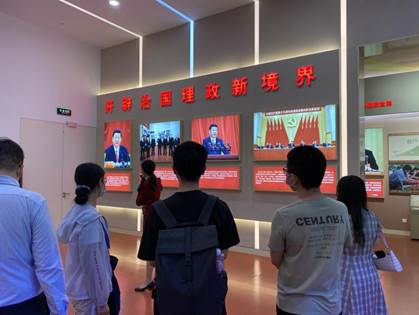 党员们先参观了复兴之路·新时代部分,映入眼帘的便是“开辟治国理政境界”主题,讲述了2012年党的十八大确立了以习近平主席为核心的新一届中央领导机构以来习近平总书记发表的重要讲话,党员们跟随着讲解员的讲述,重温了习近平总书记领导带领全国人民共同奋斗的新征程和新局面。