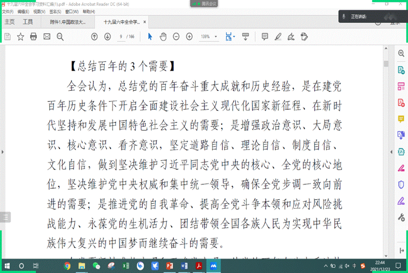 2020级学硕班于2021年12月23日晚上在线组织了十九届六中全会专题学习会,黑料网