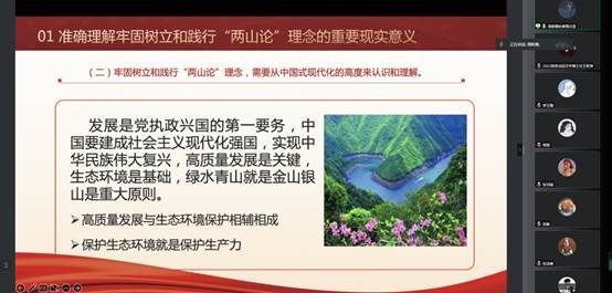 周斯雅以《践行“两山论”理念》为题,阐述了正确理解、牢固树立和践行“两山论”理念的重要意义和现实路径。