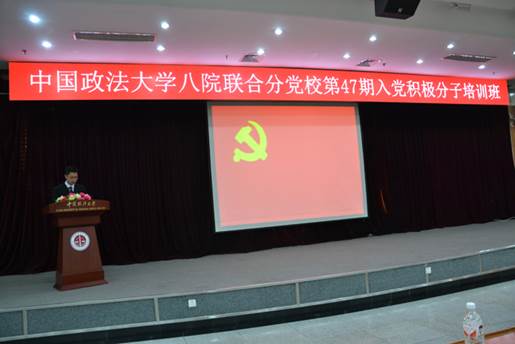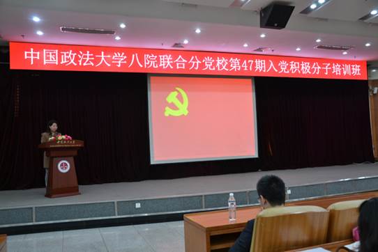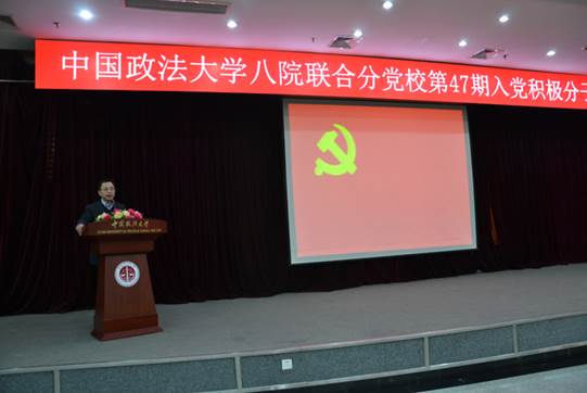 大会第三项,分党委副书记李欣宇副教授讲话。他首先指出了此次培训班的两个特点即“第47期”和“八院联合”。他说到,“47”这一数字体现了党校培训班的历史传承性,在这之前,政法大学的所有党员积极分子都曾在该课堂上接受过党组织的教育,并且在这以后也还会有更多的人参加培训,接受党的基本理论学习教育。“八院”指法大非法学专业八个学院的联合。八院联合分党校由各学院轮流承办,由起初的四院联合到六院联合,再到现在的八院联合,规模一次次扩大。他强调了八院联合的特点及优势,即可以实现更大范围的交流,也具备了更高的师资,更好地方便同学们互相交流、互相学习。