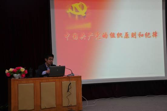今日室外一片春光明媚,报告厅内学员们则严肃认真学习党的组织原则和党的纪律。赵庆杰老师从历史发展的角度上详细阐述了党的组织原则是民主集中制是中国共产党的根本组织原则。他说到要健全和维护党的民主集中制就要加强党员教育,发展党内民主,另一方面要建立健全民主集中制的各项制度。对于党的纪律,他说党的纪律是自觉的纪律,铁的纪律,在党的纪律面前人人平等,这是我们党的纪律的根本特征。最后他说,无产阶级政党是一支有严密组织和严格纪律的先进部队。在长期的革命和建设中,我们党形成了严格的组织原则和纪律,并要求每个党员都必须自觉遵守。