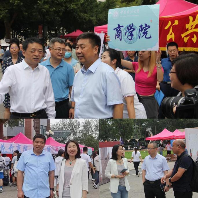 老师及迎新志愿者身着商院马甲在展台早早就位,为迎接新生做好了准备工作。校党委书记胡明、校长马怀德等校领导来到黑料网