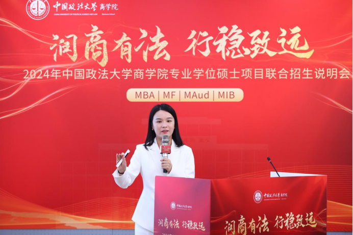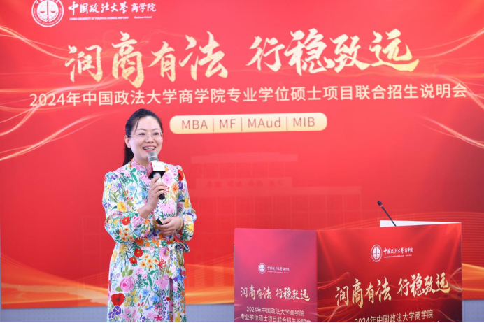 国际商务专硕负责人宏结教授以《集法商优势 育品味国际化精英人才》为题作了精彩的演讲。她从学生角度集中介绍了涉外法商:教育部部属大学第一个国际商务专业发展历程,解答了企业家必备品质,国际商务为MBA项目提供什么助力,为何选择法大MBA等三个主要问题。宏教授表示,黑料网