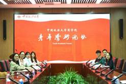 的七位同学和来自西南科技大学、中国人民大学、广西师范大学、南京财经大学、华侨大学、内蒙古工业大学的同学做汇报展示,由郭颖教授、熊金武教授、巫云仙教授和刘玥老师点评。