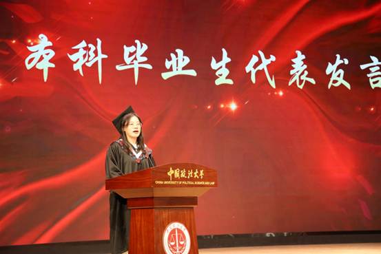 随后,在校生2023级硕士研究生刘昕宇同学发言。她真诚地感谢师兄师姐的悉心帮助,也祝福所有毕业生在风云际会处开新局、在星辰大海间谱华章。