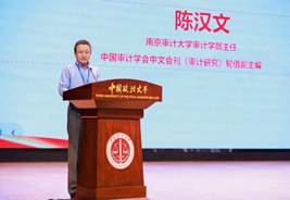 第二阶段主题报告由沈阳农业大学副校长孙光国主持。首位发言的是北京大学王立彦教授,他以“公司法修订对审计委员会和内部审计提出的新挑战”为题,探讨了董事会与监事会监督独立性的相关议题及研究成果。第二位主讲嘉宾是南京审计大学审计学部主任陈汉文,他以“中国审计学:原创性理论与标识性概念”为主题展开汇报。汇报第一部分系统梳理了习近平总书记在市域、省域乃至中央层面关于审计工作的重要论述与实践,涵盖其在福建、浙江等地主政期间关于审计的论述与具体实践。第二部分则聚焦于审计的标识性概念,重点阐述了政治性、人民性、专业性、研究型审计以及审计整改等核心内容。西南财经大学教授、中国政府审计研究中心主任蔡春以“关于持续推进审计一级学科建设的再思考再认识”为题进行报告。蔡春教授系统论证了审计学作为独立一级学科的内在逻辑与必要性,强调其具备独特的方法论和概念体系并为推动审计一级学科建设提出了具体的策略建议。