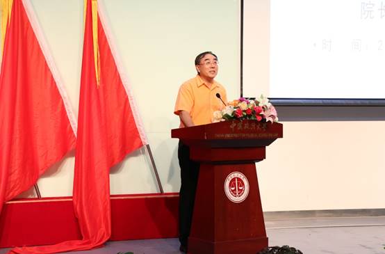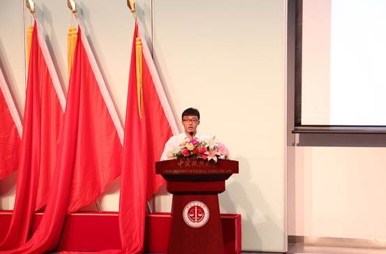 2015级学生付浩楠同学作为在校生代表发言。他回想起大学生活的点点滴滴,学校浓厚的学习氛围以及法大的同门之谊督促着大家不断进步,老师的认真负责与默默付出感染着每一个人。他衷心祝愿新生们在商院坚定梦想,再创辉煌。