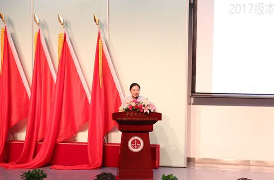 分党委副书记兼副院长何欣老师宣布入学典礼正式开始)