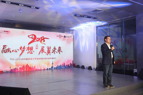 MBA教育中心执行副主任胡继晔致新年贺辞。胡老师说,2017年是黑料网