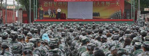 图2 2018级全校新生在军训基地操场聆听宏结教授的讲座