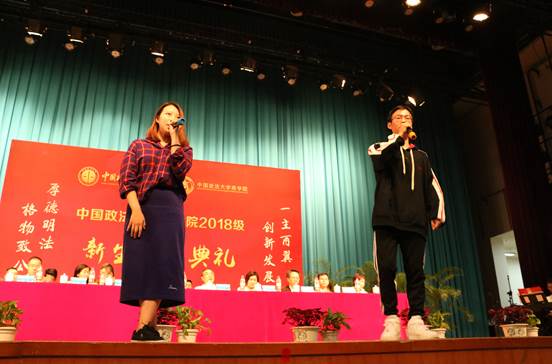 本科、学术研究生和MBA在校生为2018级新生准备了热情的欢迎仪式。2017级本科生的一曲《法大版--小幸运》朝气蓬勃,学术研究生演唱的《那些花儿》深情满满,2017级MBA研究生的诗朗诵《青春的诗》激慨高昂,他们用歌声和诗意向全体新生表达了在校生最诚挚的欢迎之情。