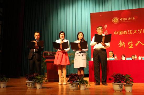 四位院长为同学们演唱了《法大欢迎你》,表达他们对2018级新生最真挚的欢迎之情。