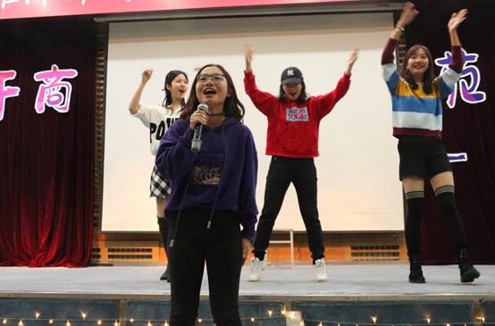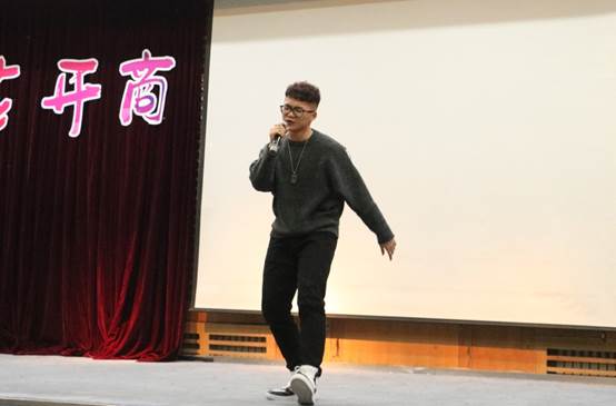 国商一班的同学独唱《sleep read love》,快节奏的说唱与富有动感的音乐点燃全场,展现了千禧一代的个性与活力。