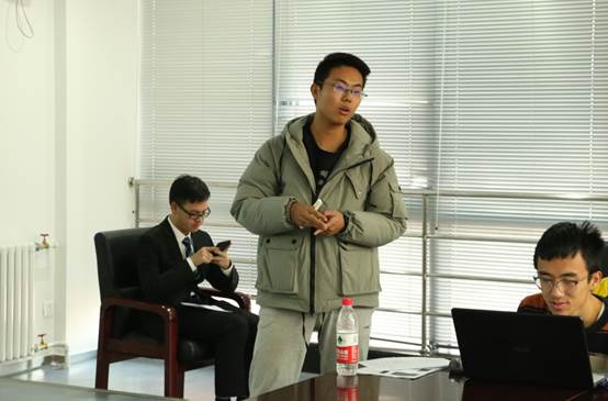 三号选手温鑫庸来自民商经济法学院,因辅修了国际商务专业而参与了本次论文大赛。他把“法商结合”作为论文的主旋律,同时围绕区块链技术、智能合约、法律属性三个关键词展开答辩。评委老师对其“法商结合”的思想做出肯定,并认为这一发展方向值得鼓励。