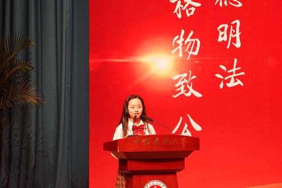 的向往与期待;为了追逐自己的梦想,也为了成为社会需要的法商复合型人才,大学四年的生活值得我们去不懈奋斗。在最后,李昕蓉同学以《返老还童》当中的一句名言与大家共勉,并且祝愿大家能够拼搏无憾、青春无悔。