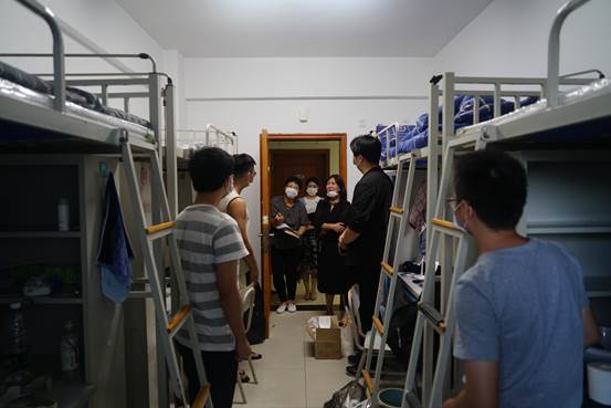 领导到新生宿舍慰问新生,了解他们的学习和生活情况,鼓励他们在校期间有问题多与辅导员沟通交流,尽快适应新环境,投入到全新的学习生活中去。