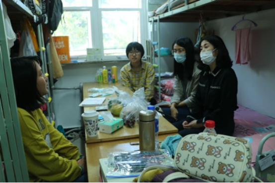 分党委副书记何欣、2018级辅导员郑益群、2020级辅导员张叶专程走访新生宿舍,看望刚入校的新生们。在宿舍里,何欣副书记和两位辅导员与新生亲切的沟通,了解大家的兴趣爱好,询问关于志愿填报时的想法和大学生活第一天的感受,鼓励同学们多多跟辅导员、师兄师姐们沟通,尽快适应大学的环境,开启全新的大学生活!