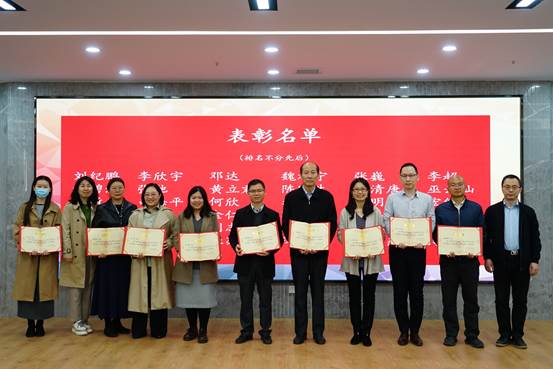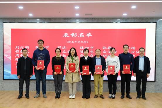 随后,熊金武副院长宣读了在一流本科专业申报工作中做出重要贡献和付出辛勤劳动的教师表彰名单,并由院领导分别给受表彰教师颁发荣誉证书。