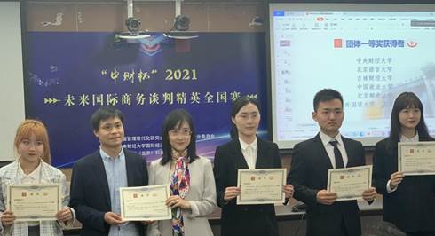 张淑静教授、陈曦教授荣获优秀指导教师奖,周科宇同学获最佳谈判手奖,樊飞航同学获优秀谈判手奖。
