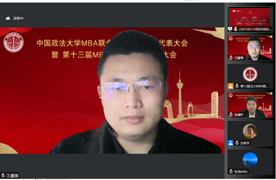 接下来,第十二届MBA联合会主席汪鑫强、副主席张鸿依次代表第十二届主席团汇报了工作情况。