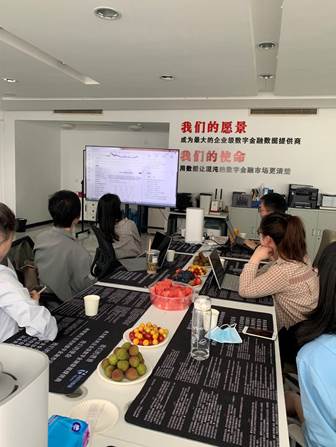 2017级优秀研究毕业生刘欣源向师生们演示了近期的研发成果。同伴客数据是领先的企业级数字金融数据提供商,以数字货币数据为核心立足点,旗下拥有TBanic数字金融终端、区块链数据与算力中心、以及金融与商业数据智能三大核心业务板块,运用数据科技助力新金融市场发展。