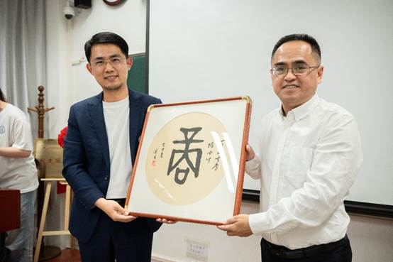(曾木校友向学院赠送自己亲笔书写的“商”作为纪念)
