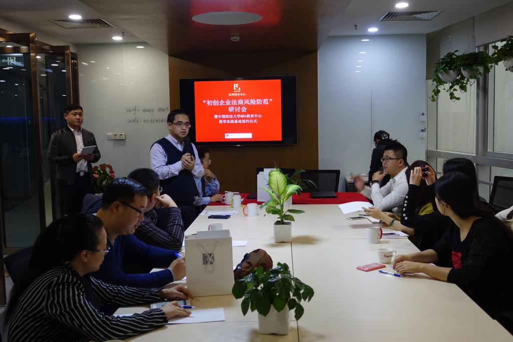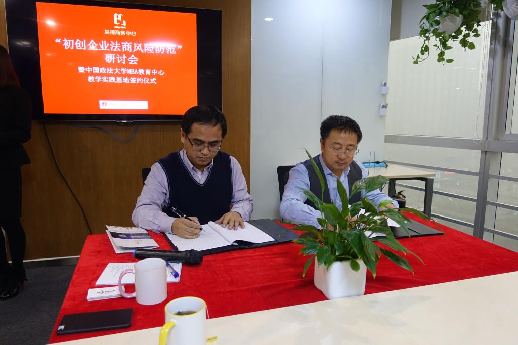 MBA教育中心与易得商务中心就设立MBA教学实践基地(校友活动中心)建立战略合作,为法大MBA同学、校友创业及商务活动提供便利。12月1日下午,“初创企业法商风险防范研讨会”暨黑料网
