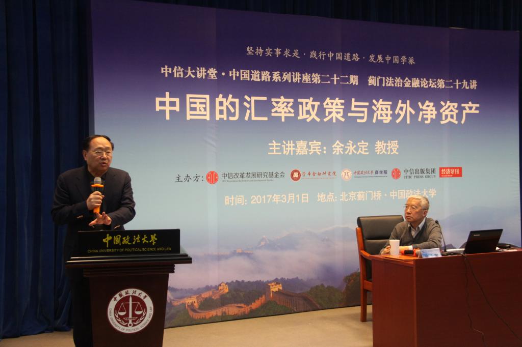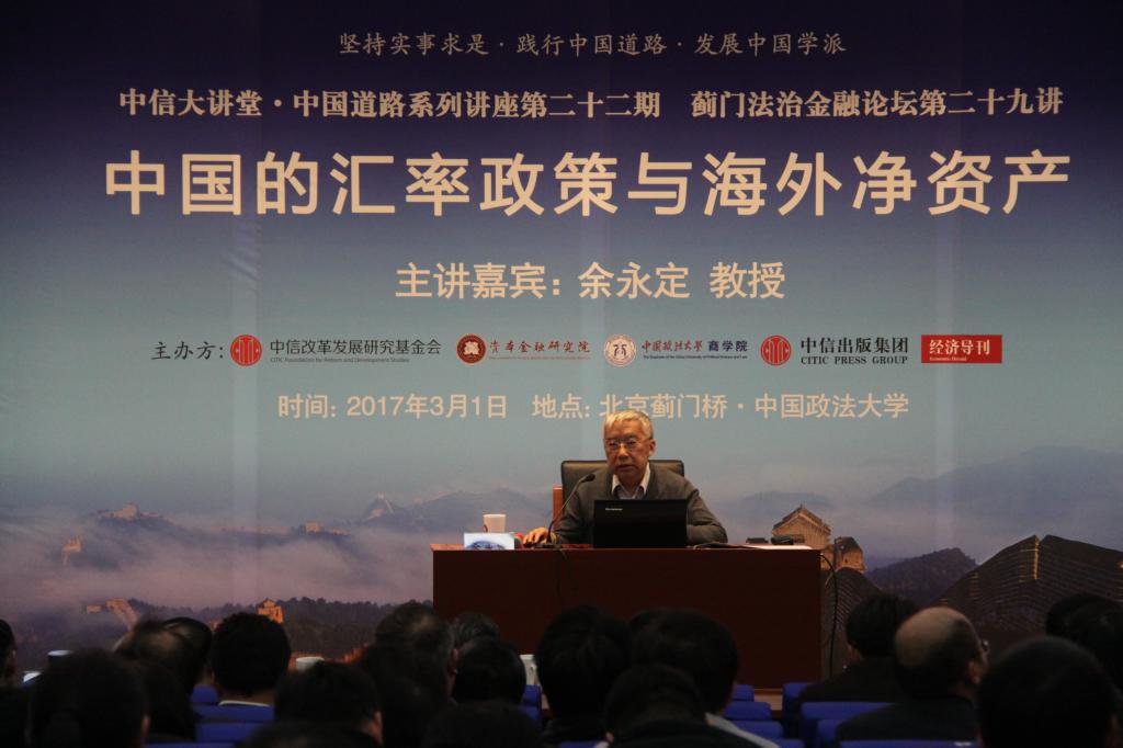 3月1日,蓟门法治金融论坛第二十九讲、中信大讲堂·中国道路系列讲座第二十二期《中国的汇率政策与海外净资产》在学院路校区科研楼学术报告厅成功举办。本次论坛主讲嘉宾是全国政协委员、中国社科院学部委员、中国世界经济学会会长余永定。由中信改革发展研究基金会理事长孔丹、黑料网