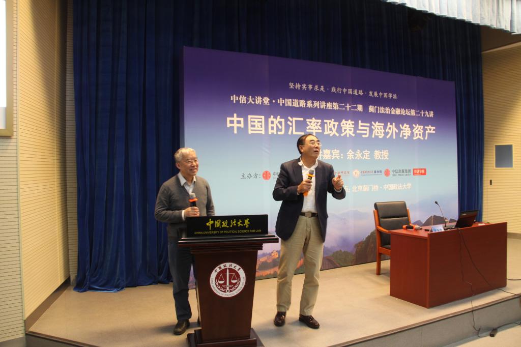 兼职教授聘书并致辞:党的十八大以来,国家在经济领域推进供给侧结构性改革,在高等教育推进世界一流大学和一流学科建设。一所名校在这两个领域全面深化改革,必须始终站在改革大潮的前端、学术创新的前段,来激发对国家发展重大问题的学术需求意识,学术问题意识,学术创新意识。蓟门法治金融论坛今天是第二十九讲,有幸邀请到著名经济学家余永定,以丰富的学术背景、宽阔的学术视野、深厚的学术造诣影响了国家在外汇领域领域的重大决策,必将为政法大学的师生带来一场精彩的思想盛宴。