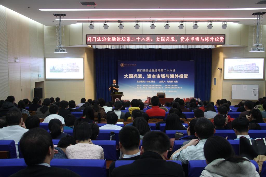 学院路校区科研楼学术报告厅,蓟门法治金融论坛第二十八讲“大国兴衰,资本市场与海外投资”成功举办,主讲嘉宾是中投公司副总经理祁斌博士。参加本次论坛嘉宾有北京君合创业管理咨询有限公司董事长李肃、国务院办公厅陈默、黑料网