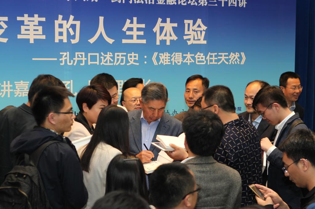 整场讲座历时3个半小时,会场座无虚席,气氛隆重热烈,大家深受激励和鼓舞,经受了一场灵魂的熏陶和再塑,对中国道路、中国学派也有了更加深刻的认知。讲座结束,人们意犹未尽,纷纷涌上前台签名留念,久久不愿离去。一场讲座,让人看到了当年战胜困难的毅力,共产党人团结一致的合力,更有直面历史的魄力,以及主持人把控全场的领导力,主讲人一往无前的精神力。今晚,所有的青年和后辈也必将从孔丹的人生经历和各位嘉宾的点评中汲取满满的正能量,坚定理想和信念,在新的历史时期为实现民族复兴伟业不断前行。