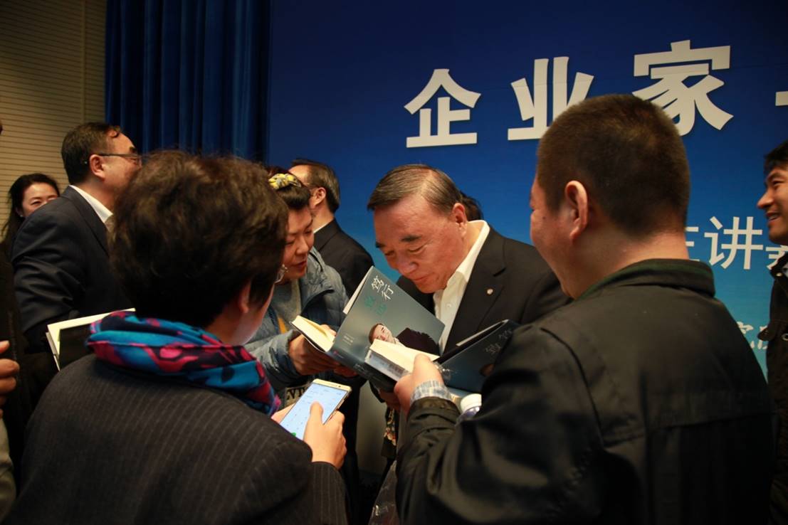 论坛结束后,师生围在宋志平教授身边久久不愿离去,现场与嘉宾热情交流。宋志平教授与现场志愿者合影留念并耐心的为现场学生签名,回答学生提出问题。同学们被宋志平先生的谦和睿智深深打动,纷纷表示通过今天的讲座,对企业家和企业家精神都有了全新的认识,对未来的个人成长有很大的裨益!