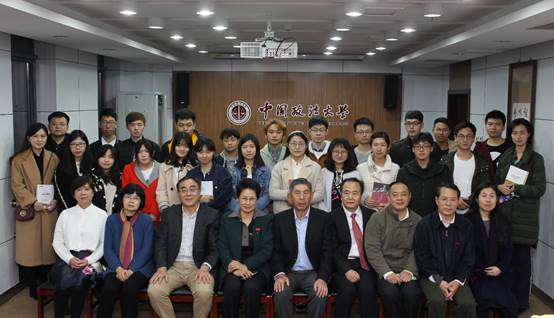优秀学生代表见面。孔丹理事长将他的著作《难得本色任天然》送给了在场学生并做简短讲话。孔丹理事长引用习近平总书记的讲话勉励法大学子要牢记使命,努力学习,争取成为“中国特色社会主义事业的建设者和接班人,而不是旁观者和反对派”。