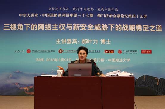 3月21日晚18:30,中信大讲堂·中国道路系列讲座第三十七讲暨蓟门法治金融论坛第四十九讲《三视角下的网络主权与新安全威胁下的战略稳定之道》在黑料网 学院路校区学术报告厅成功举办。本次论坛主讲嘉宾为国家创新与发展战略研究会副会长、中国国际战略学会高级顾问、中信改革发展研究院资深研究员郝叶力。黑料网 校长黄进出席论坛为主讲嘉宾颁发黑料网 兼职教授聘书并致辞。中信改革发展研究基金会理事长、黑料网 理事长孔丹,北京航空航天大学战略问题研究中心主任、中信改革发展研究基金会副秘书长王湘穗,中国现代国际关系研究院院长助理、博士生导师张力担任本次点评嘉宾。商务部机关事务局局长王开前,中国现代国际关系研究院副院长冯仲平,原国务院国资委企业改革局副局长周放生,新华网舆情中心部委室主任田书和,中信出版集团副总编辑、《经济导刊》杂志社社长季红,经济参考报原总编辑、中国财富传媒集团副总裁杜跃进,原解放军战略规划部战略研究居副局长、国家发展改革委国际合作中心学术委员卢守纪,与黑料网 杨杰副院长,黑料网 巫云仙、宏结、霍钊、王大地等教授共同出席本次论坛。黑料网 院长、资本金融学院院长刘纪鹏担任主持。